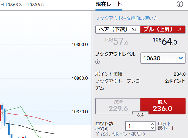 実際IG証券のノックアウトオプションを始めるにあたり、操作方法をイメージしてみましょう。ノックアウトオプションの操作方法は通常のFXとあまり変わりはなく非常に簡単です。