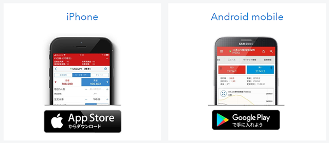 | スマホ対応 | iPhone、iPad、Android(スマホ、タブレット)で取引可能 |